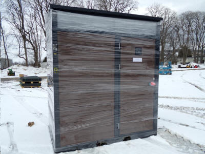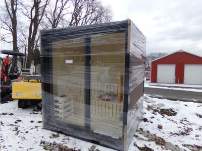Special Self-Contained Sauna Buildings, Outdoor BBQ Enclosed Outdoor Kitchen, (8) Fancy Power Driveway Gates: Fancy 10 x 7 Self-Contained Sauna w/Deck; 7x 7 Self-Contained Sauna; Super Neat BBQ Outdoor Kitchen Bldg. w/Grill And Cabinets; (8) Asst. Fancy Driveway Sliding Gates w/Power Openers, Real Neat. Plus - Several Iron Gate Driveway Gate Sets, Steel Fence Panels; (6+) Fancy Self-Contained Bathroom Units Of Different Varieties